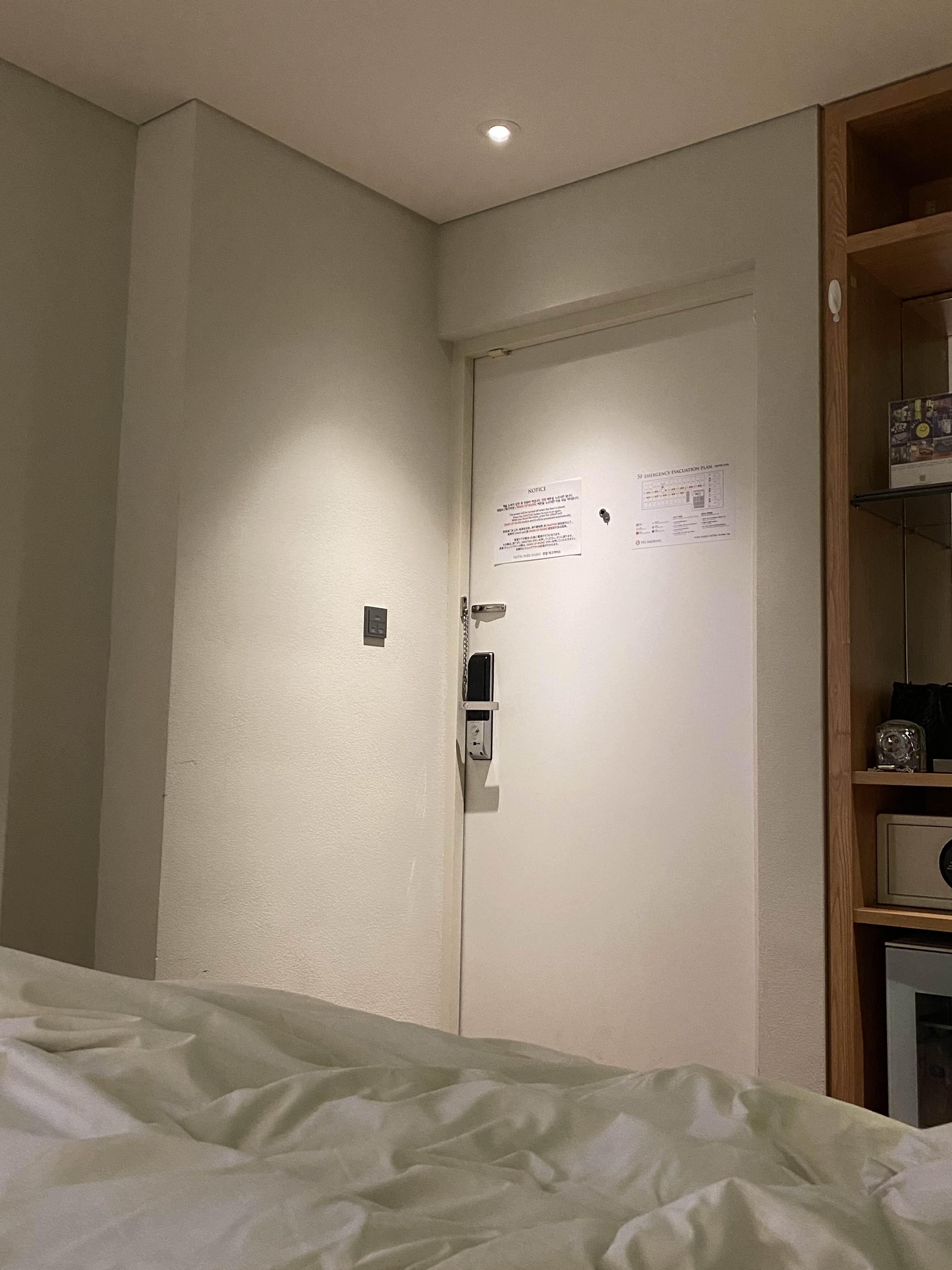 파크하비오 호텔은 신기하게도 호텔키 대신 비밀번호를 입력하여 입실한다.