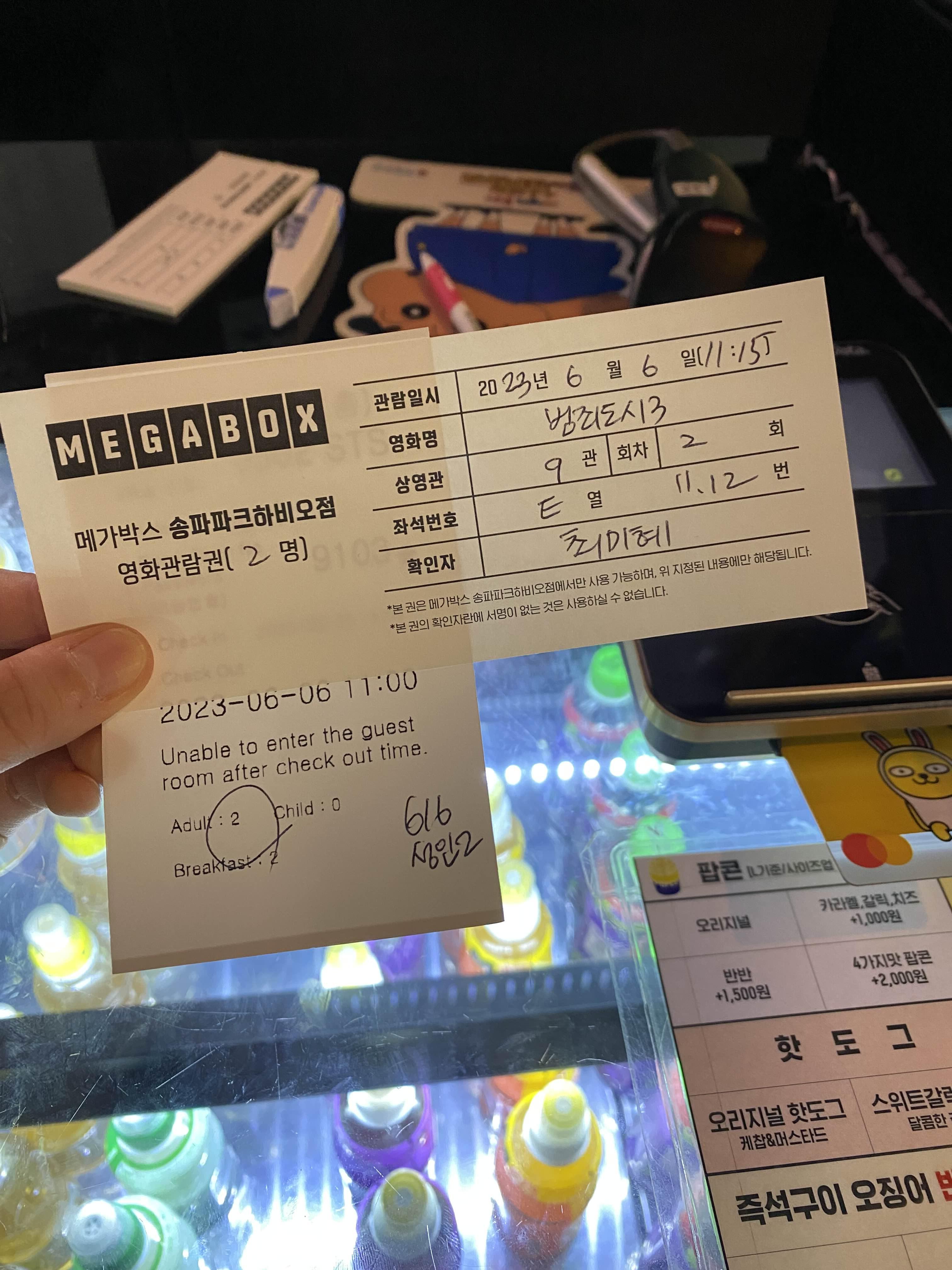 퇴실하고 호텔 지하에 있는 메가박스에 가서 영화예매를 하기로 했다.