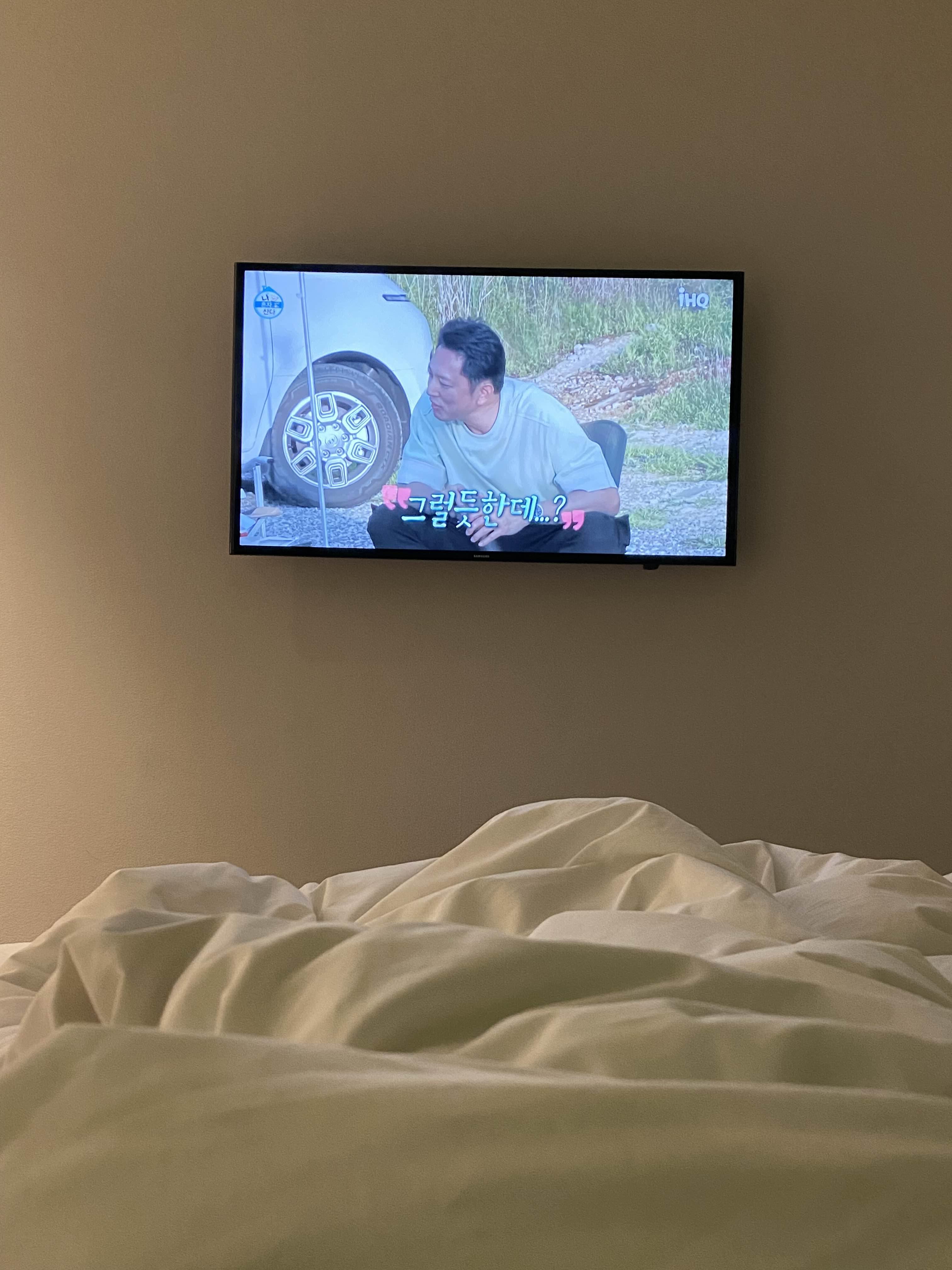 나 혼자 산다 틀어놓고 푹신한 침대에 누워 에어컨 켜놓고 이불을 목 끝까지 덮었다. 행복했다.