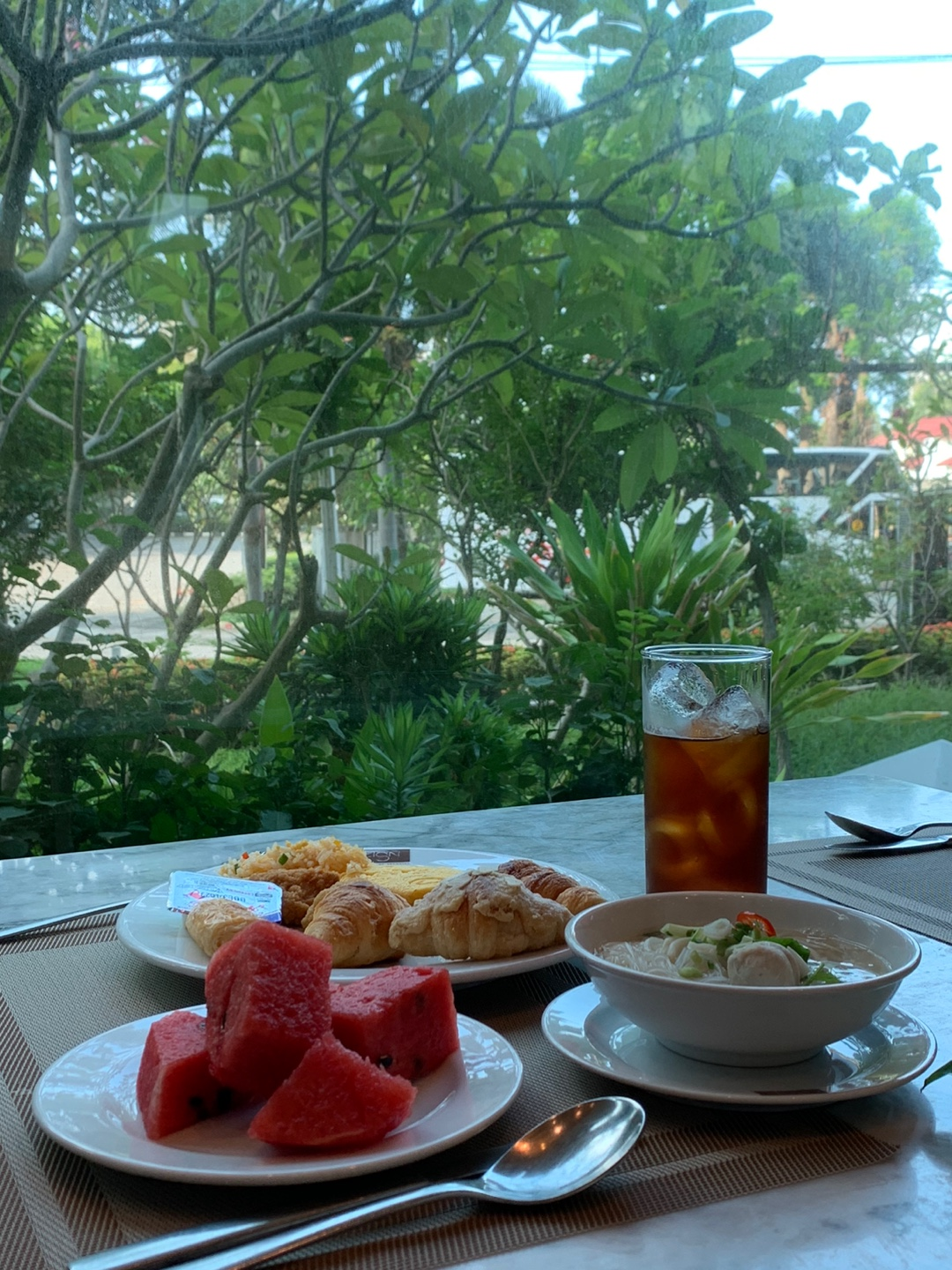 전날 맛있게 먹었던 빵과 쌀국수, 아이스커피를 먹었다.