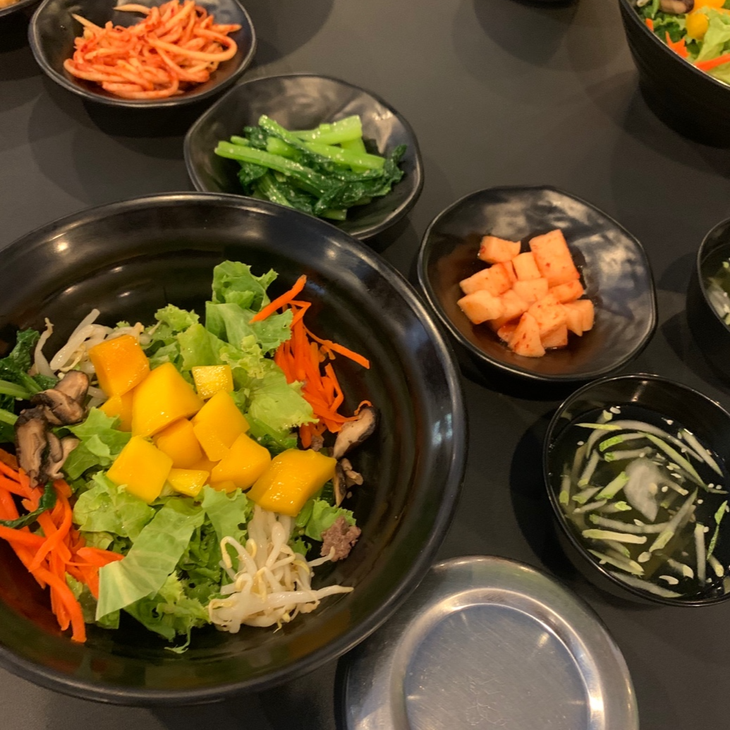 나는 망고를 빼고, 비빔밥으로 먹은 다음, 망고는 후식으로 먹었다.