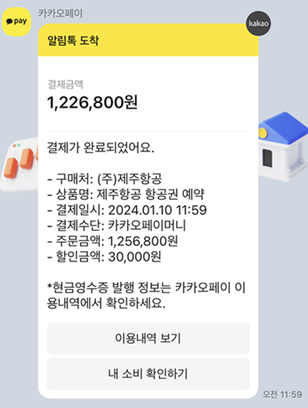 귀국하는 비행기가 수하물이 포함되어있지 않았지만 4인 1,226,800원. 1인 306,700에 결제했다.