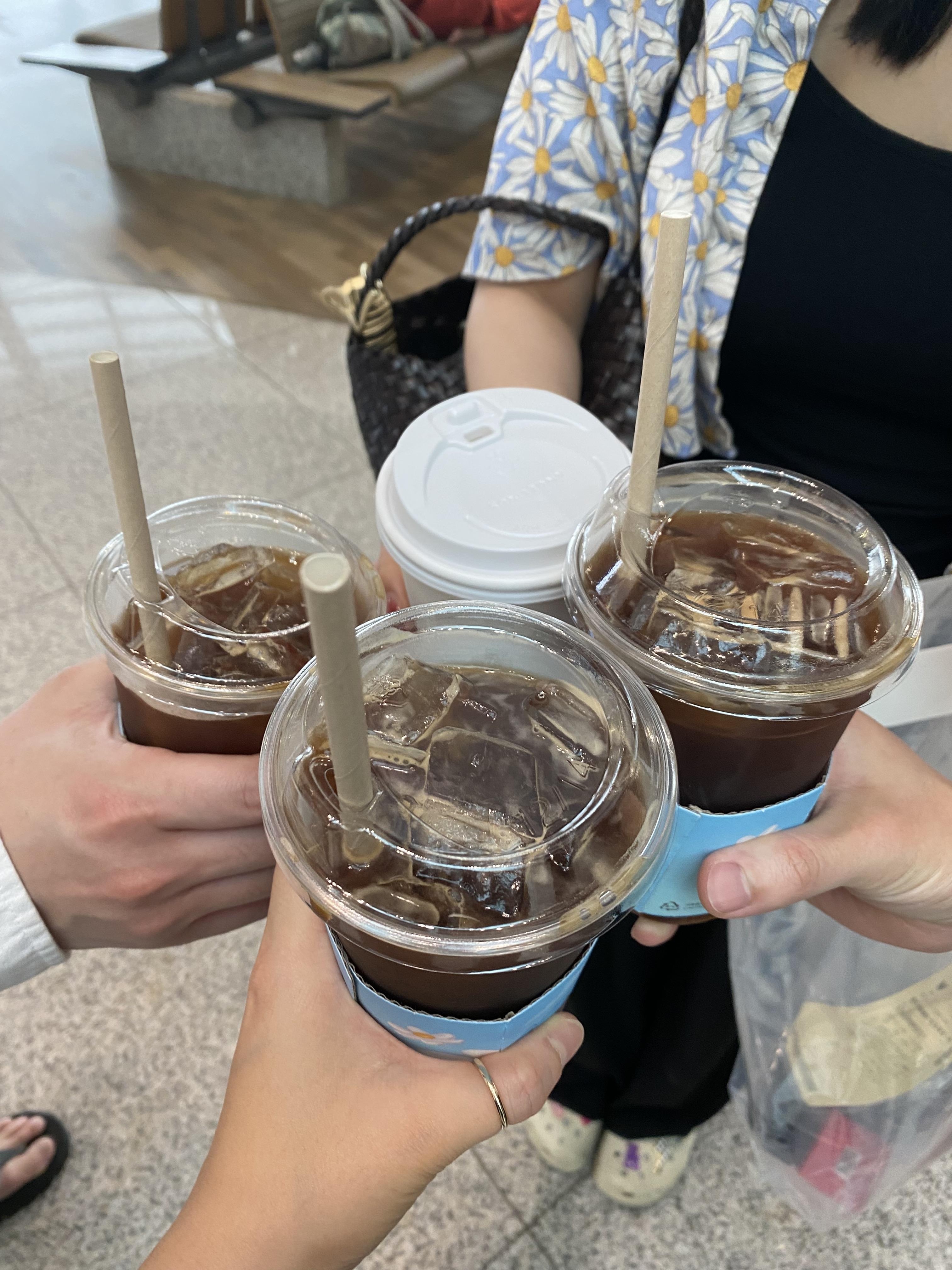 앗 뜨거운 커피는 기내반입이 안된다. 친구는 홀짝홀짝 다 마시고 들어갔다