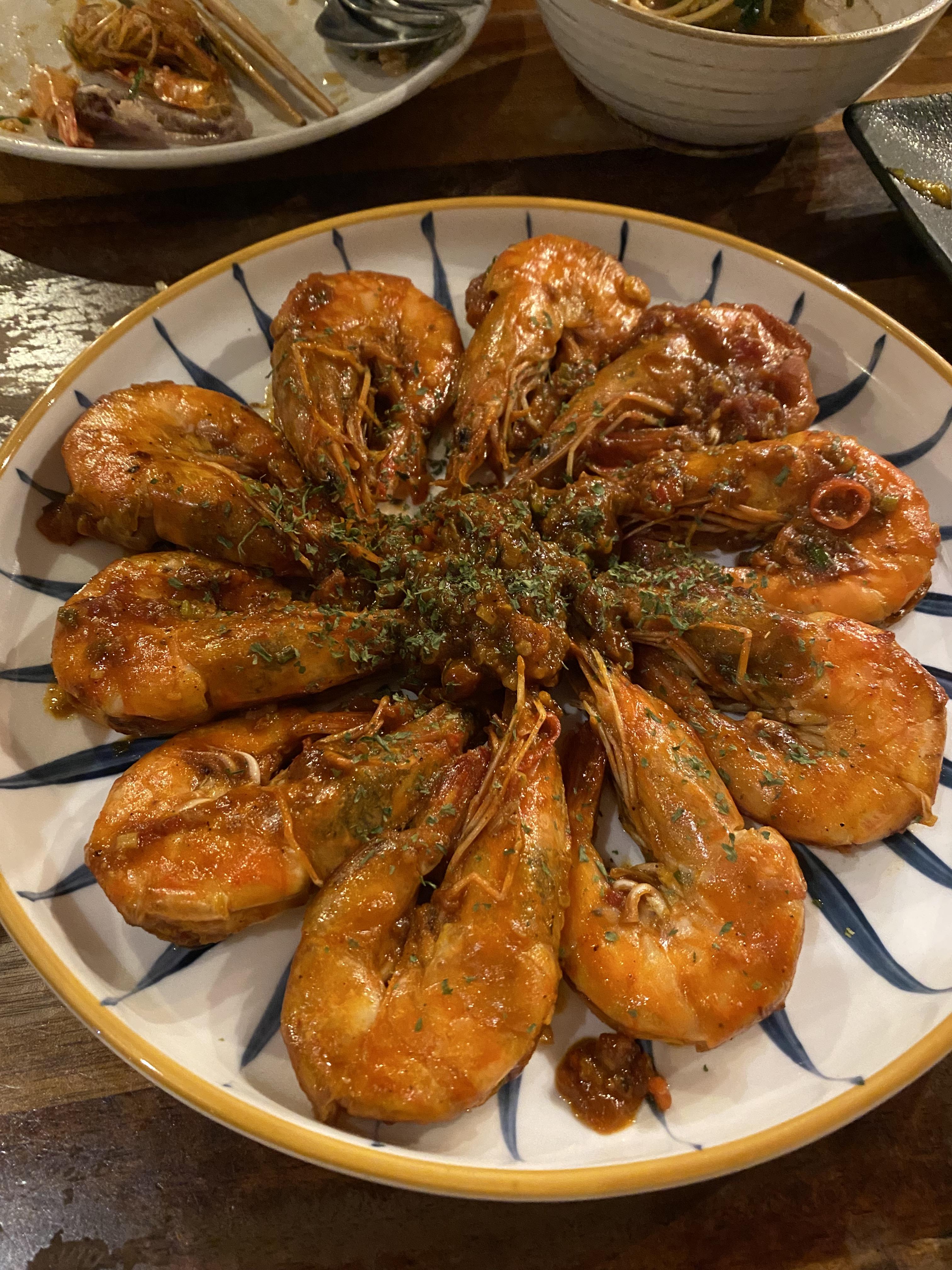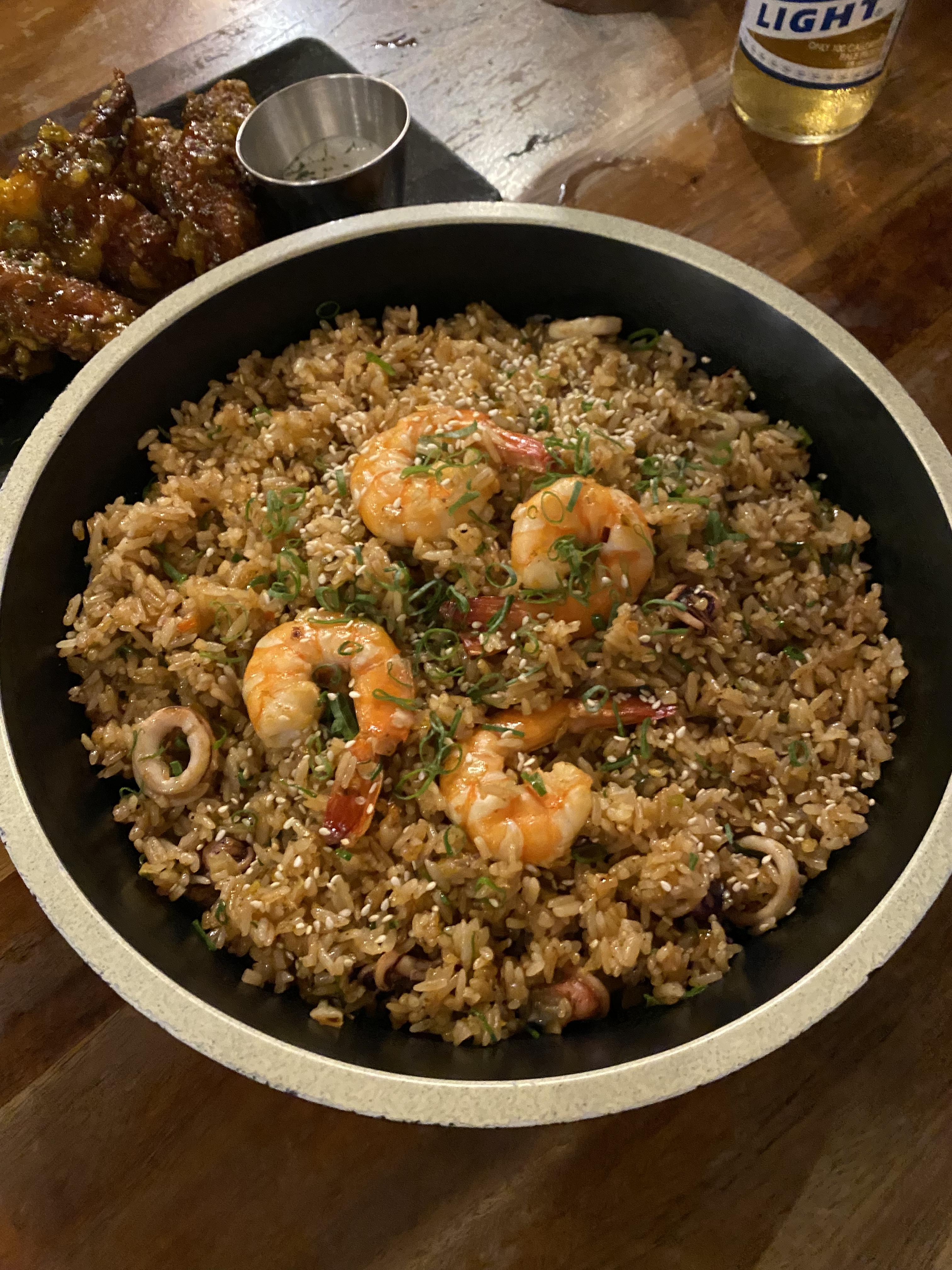 우리는 짬뽕파스타, 망고윙스, 해산물볶음밥, 칠리새우를 주문했다.