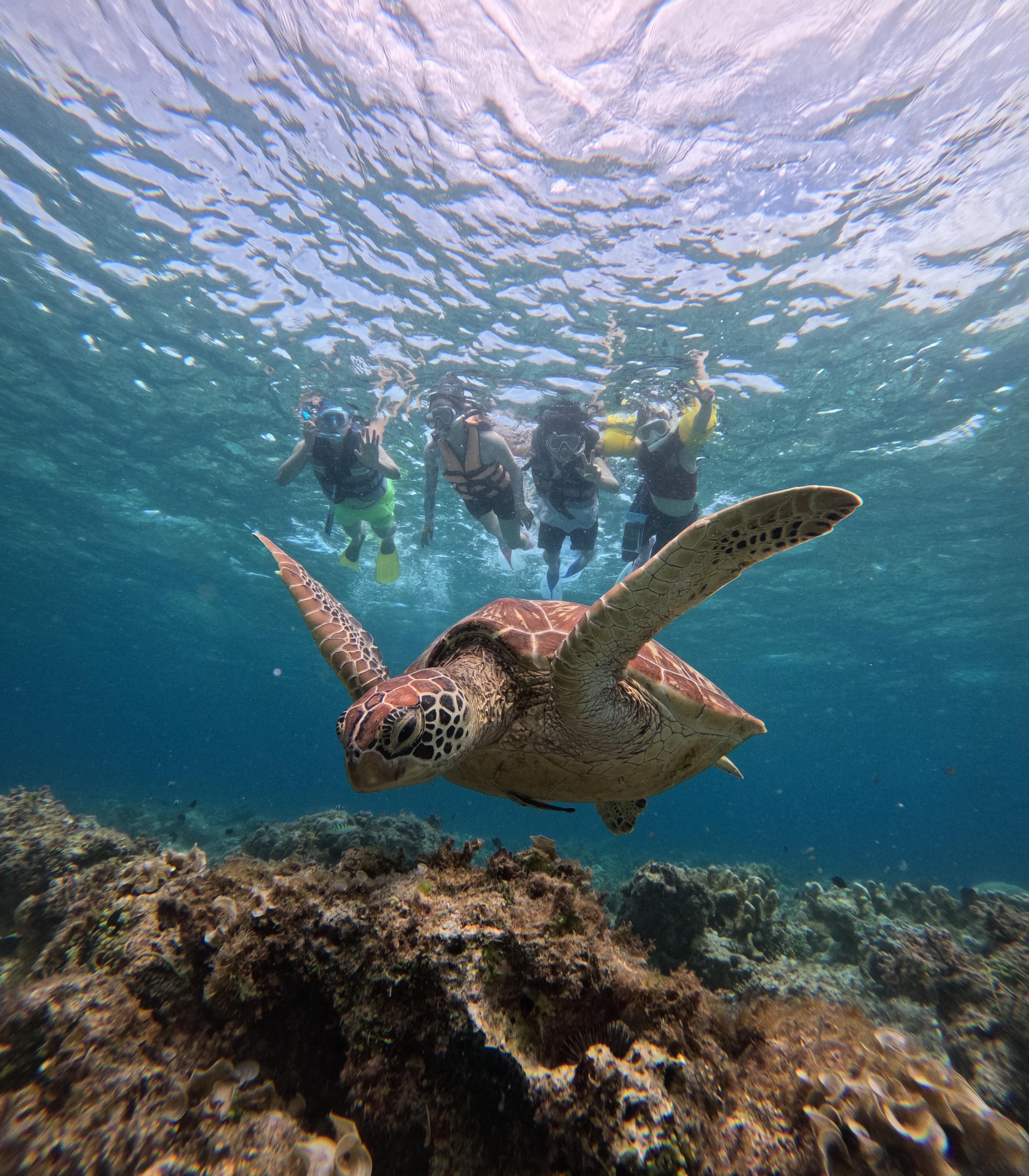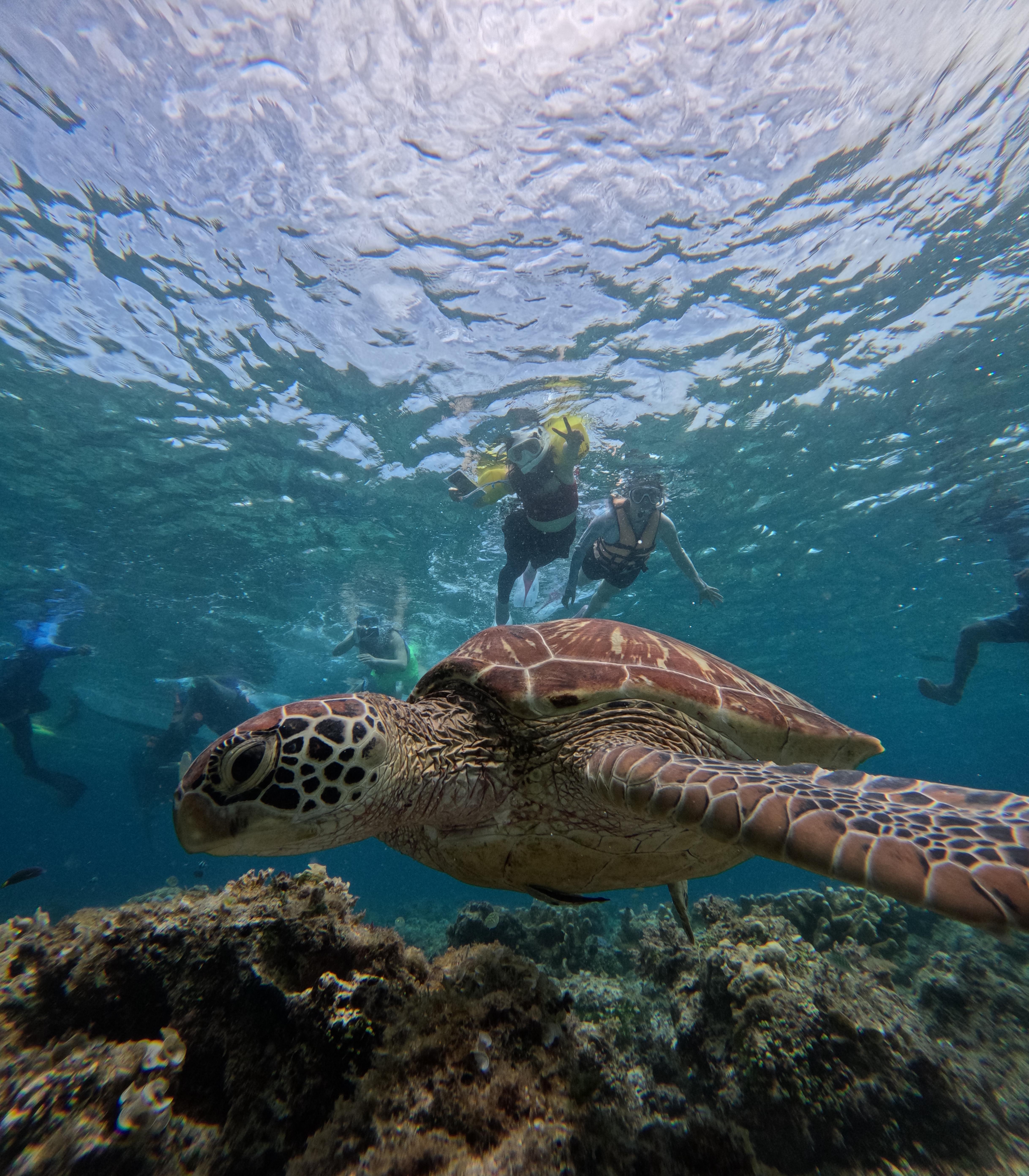 물에 뛰어들자마자 바로 거북이를 발견했다.