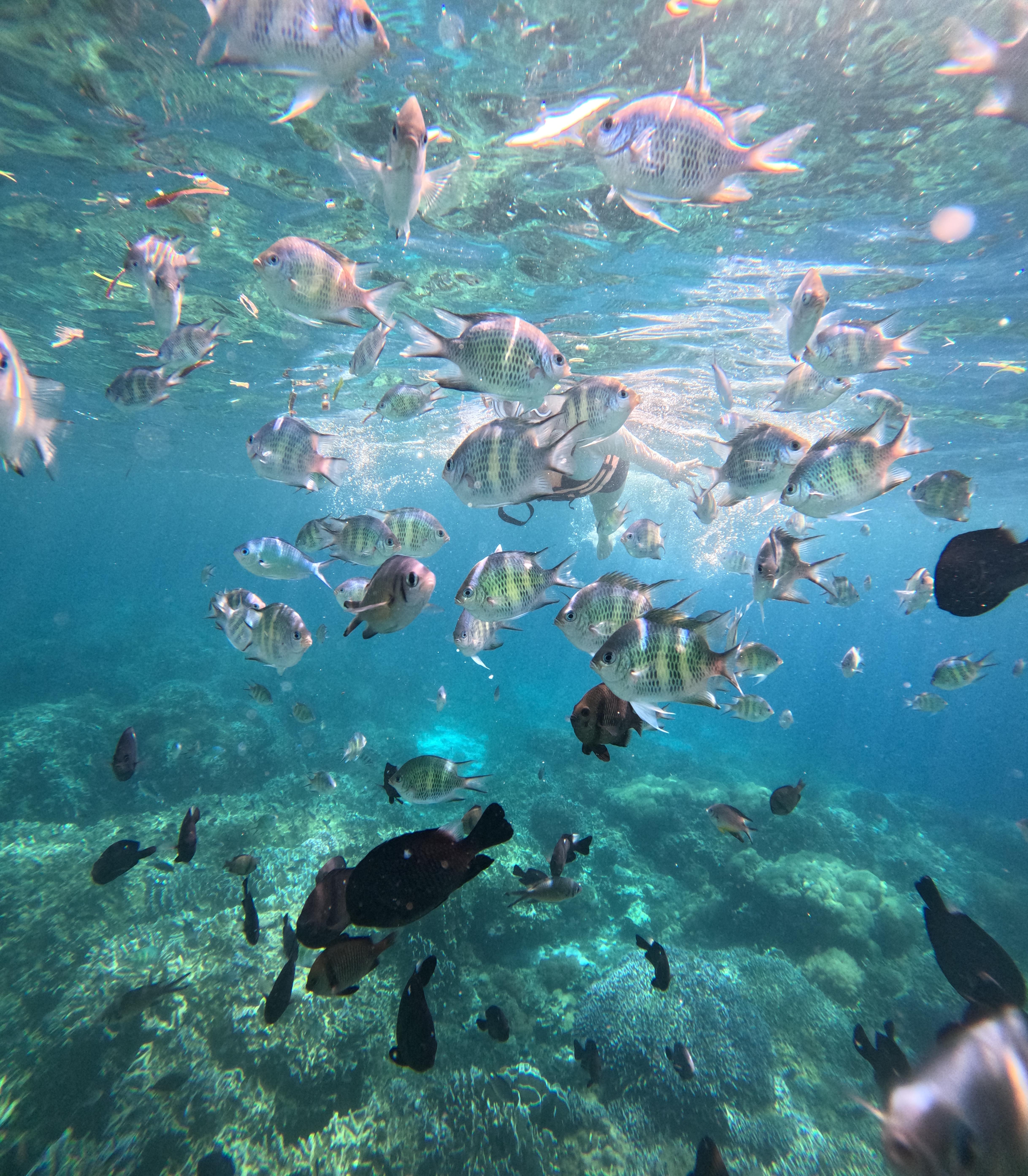 고래상어랑 스노클링이 끝나고 배로 올라오다가 아저씨가 던지는 새우젓에 맞았다ㅎㅎㅎ