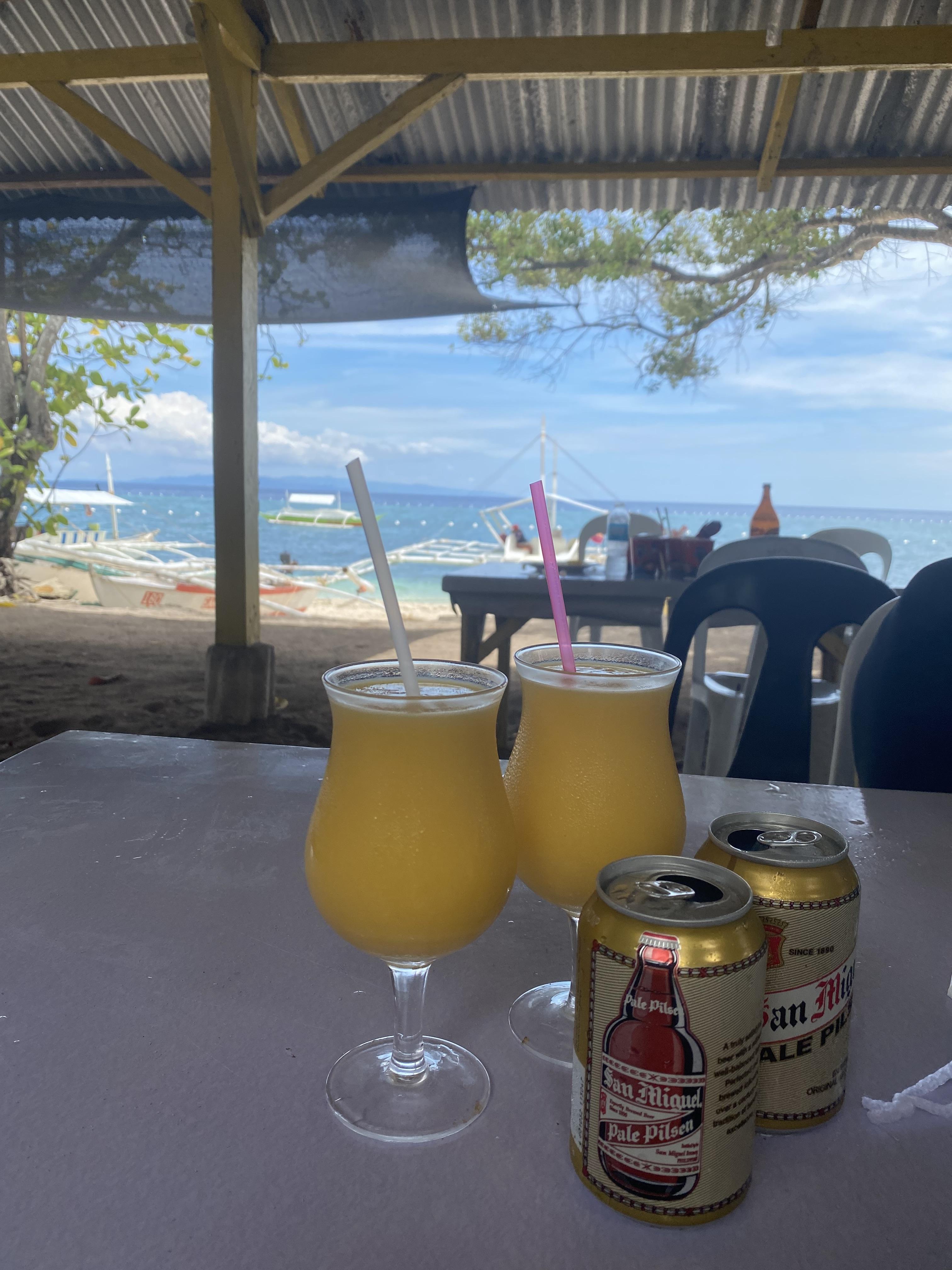 발리카삭 섬에서 쉬다가 망고주스랑 맥주 한잔씩 했다.
