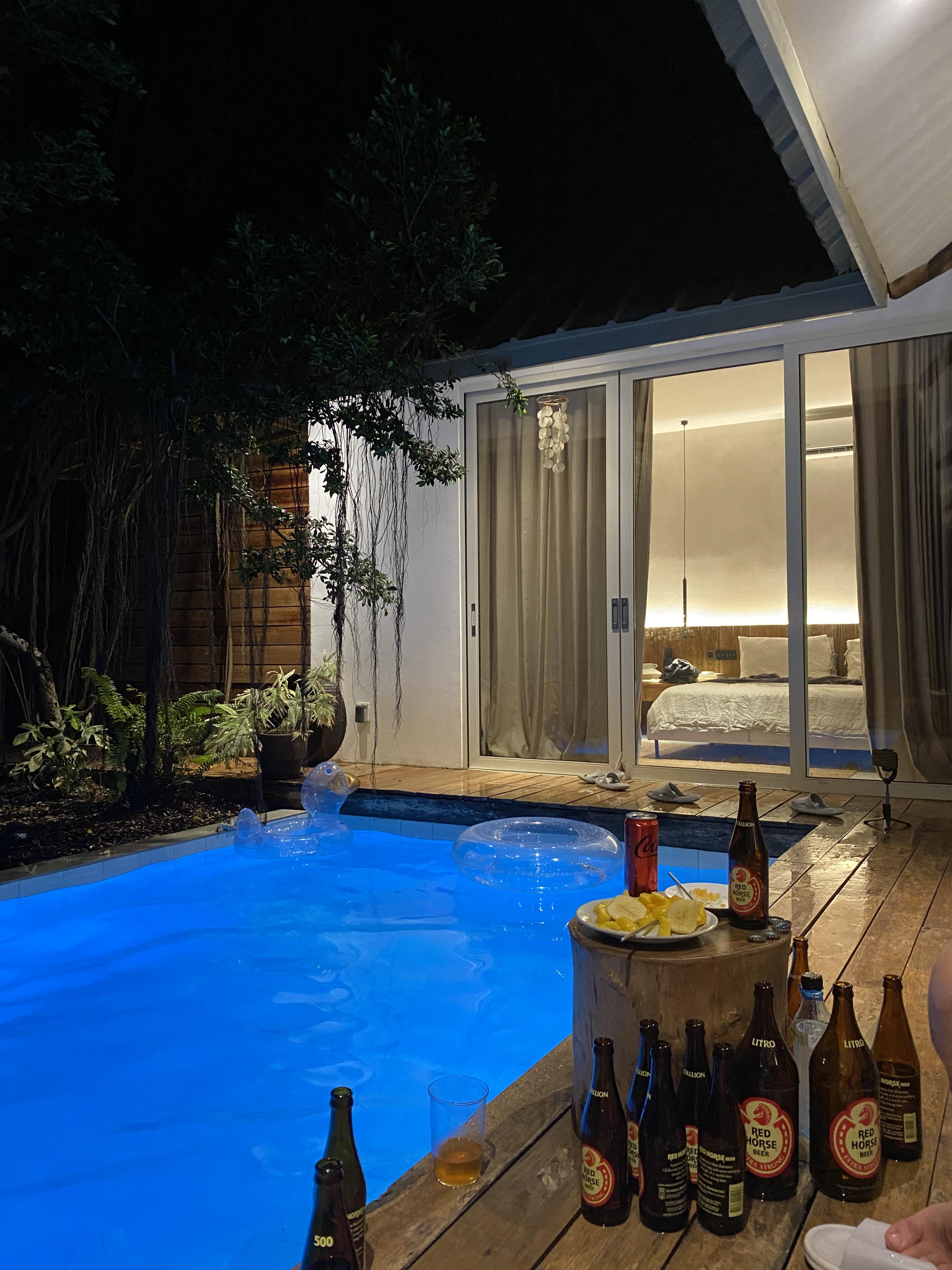 밤늦게까지 맥주 잔뜩 먹고 수영했다.