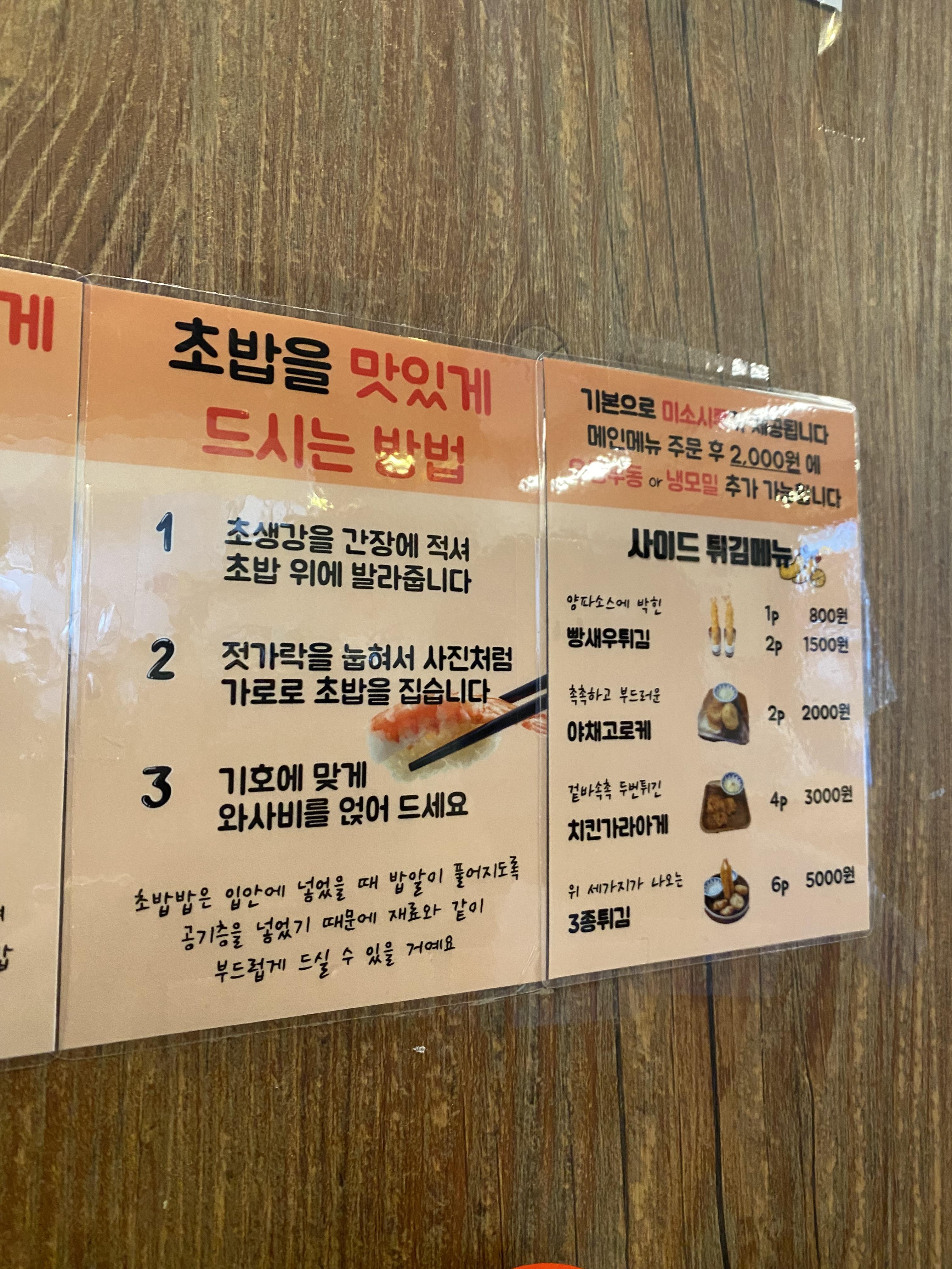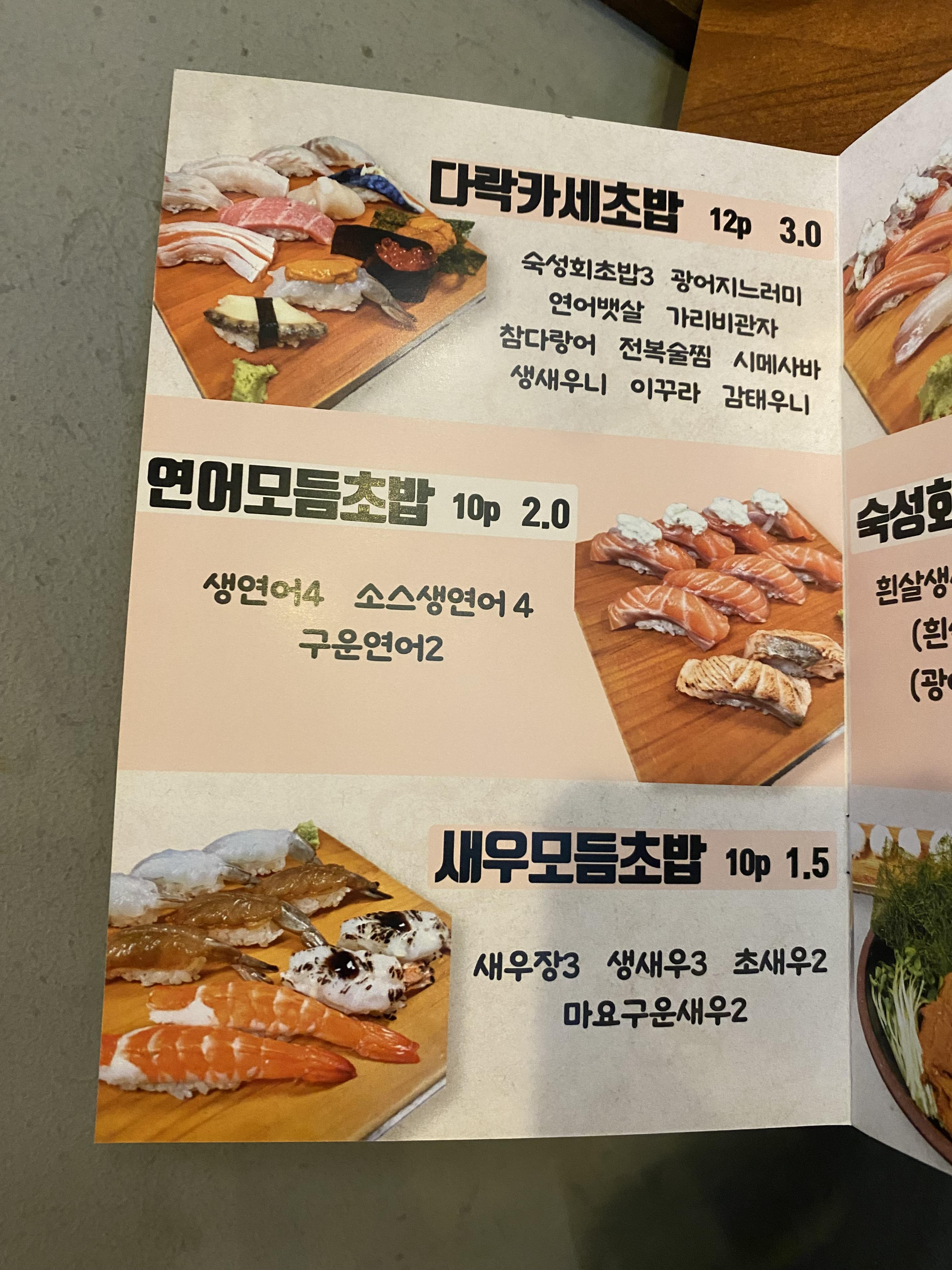 여러가지 초밥을 맛 볼수 있어서 좋았따.