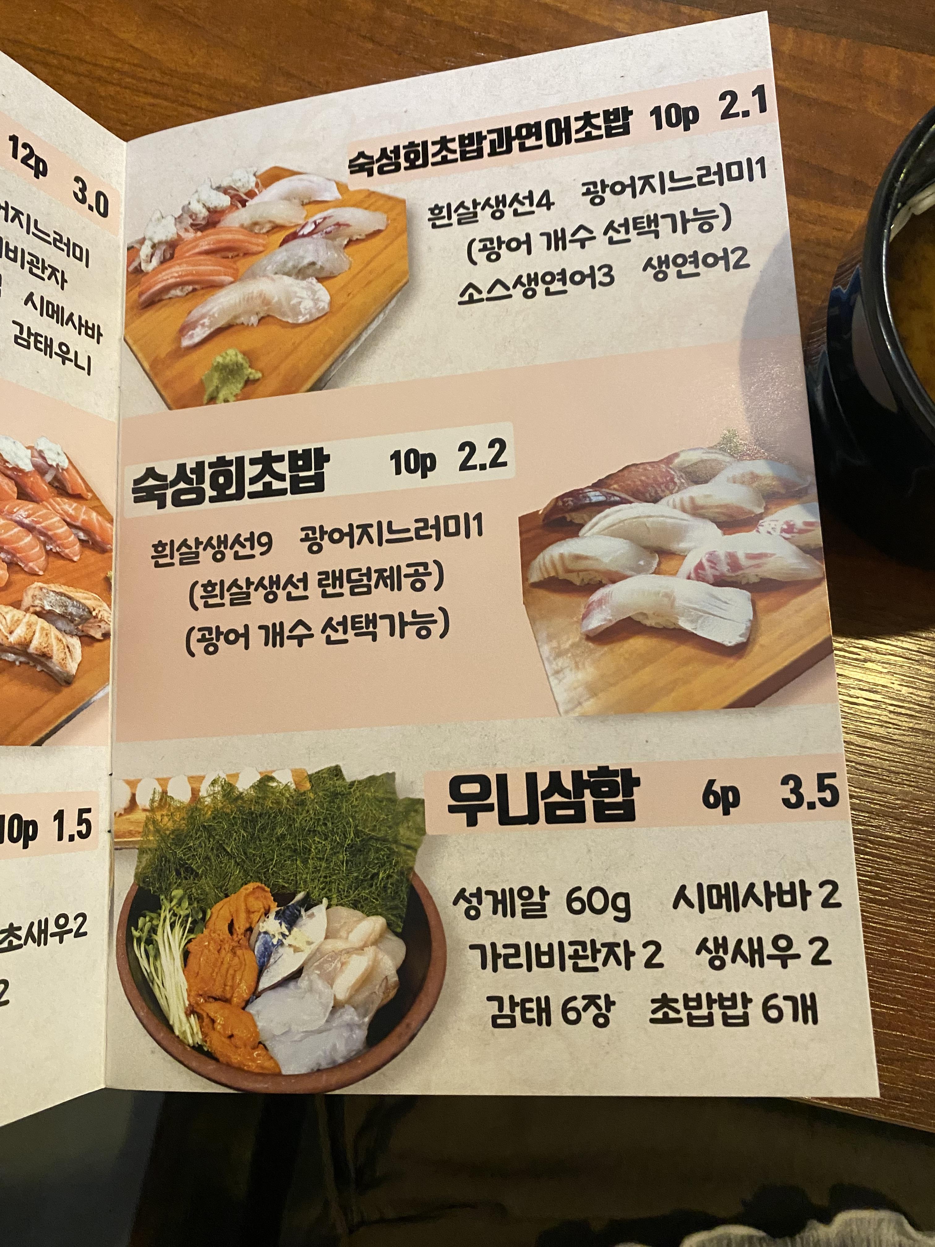 숙성회 초밥은 10피스 모두 흰살생선이라... 나는 조금 질릴것같았다..ㅎㅎㅎㅎ