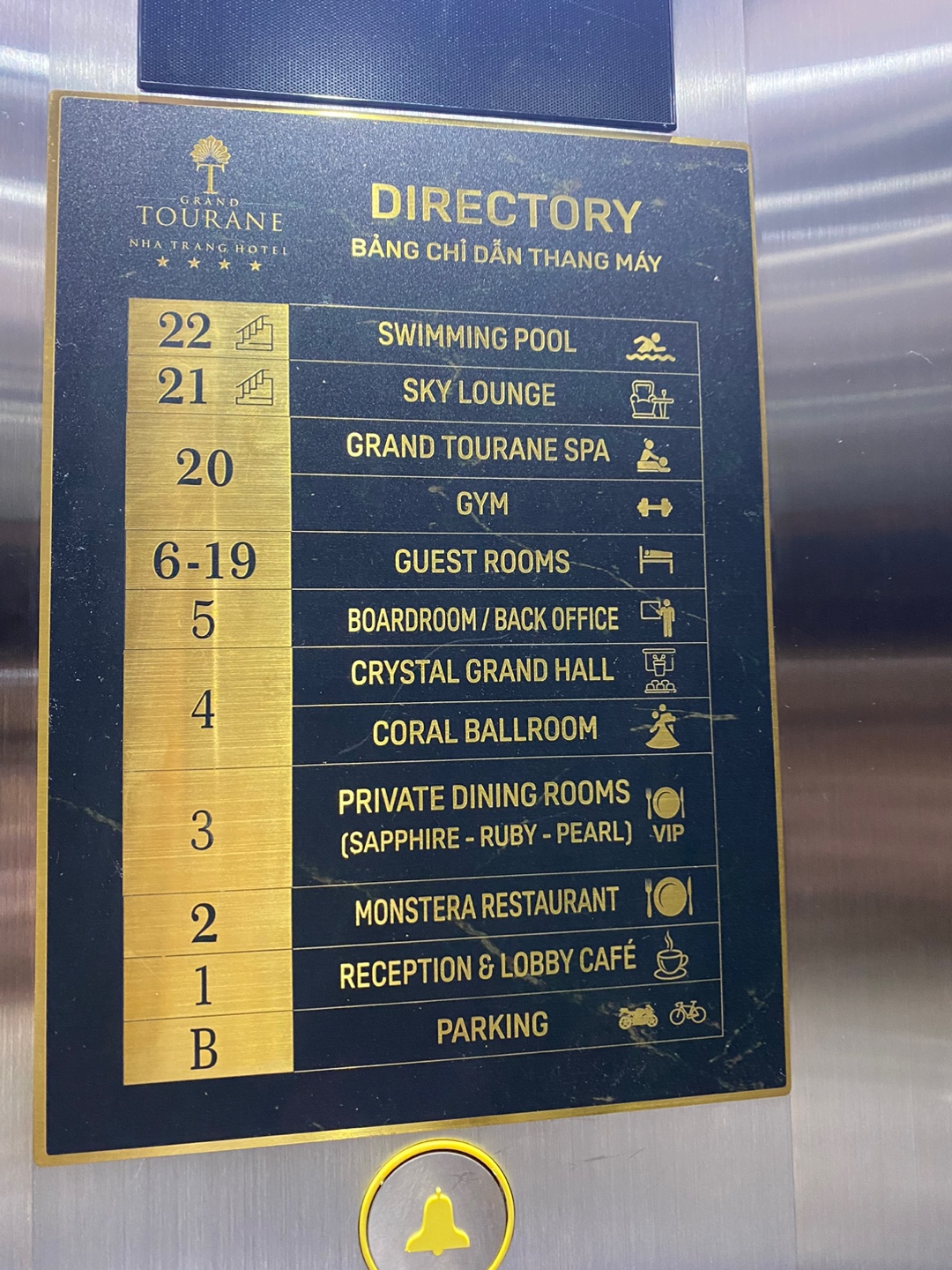 우리는 12층을 배정받았고 20층에는 헬스장과 스파, 21층에는 스카이라운지, 22층에는 루프탑수영장이 있다.