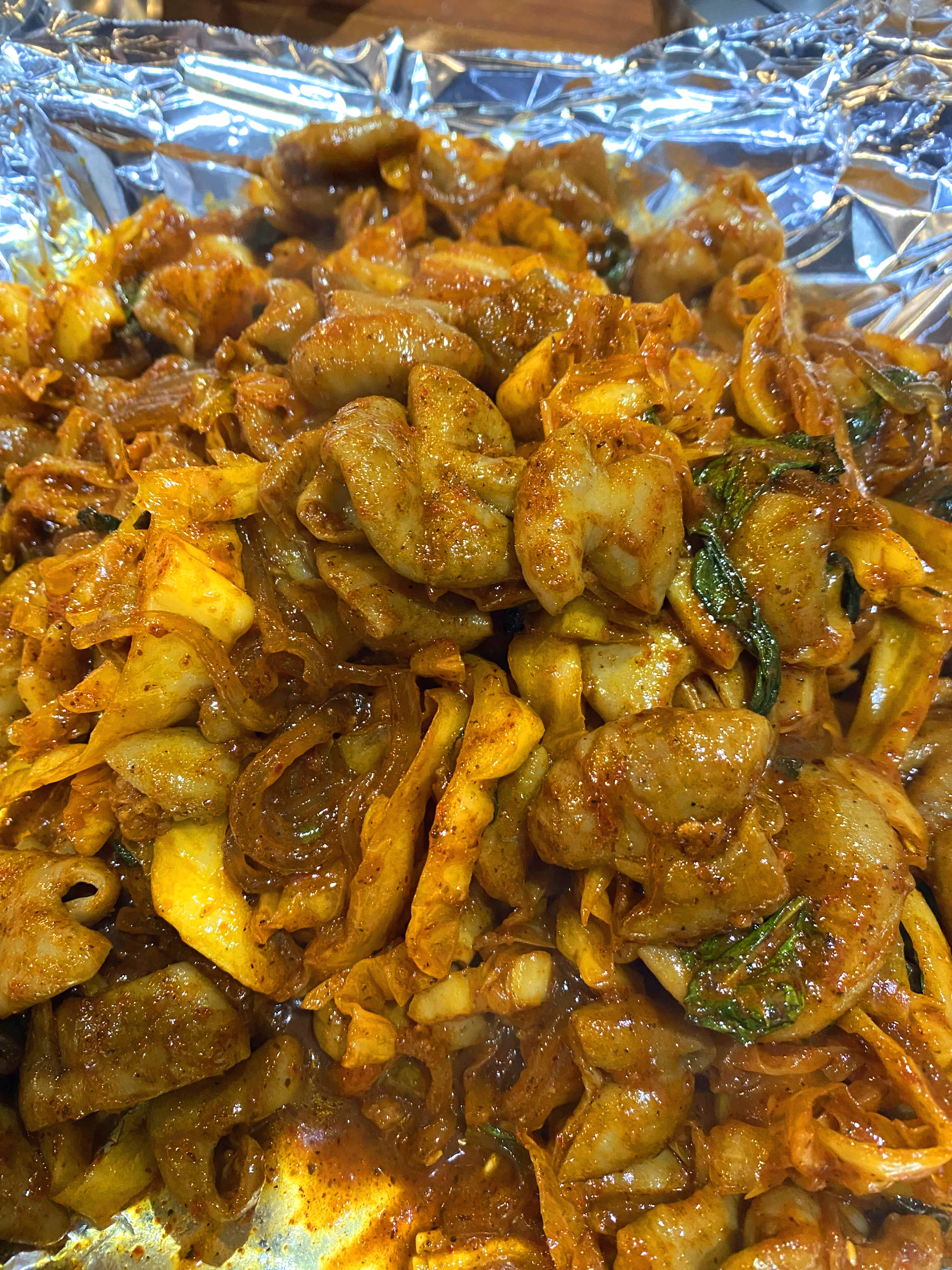 모든 재료와 곱창에 양념이 잘 배어 있다. 진한 양념맛. 굳.