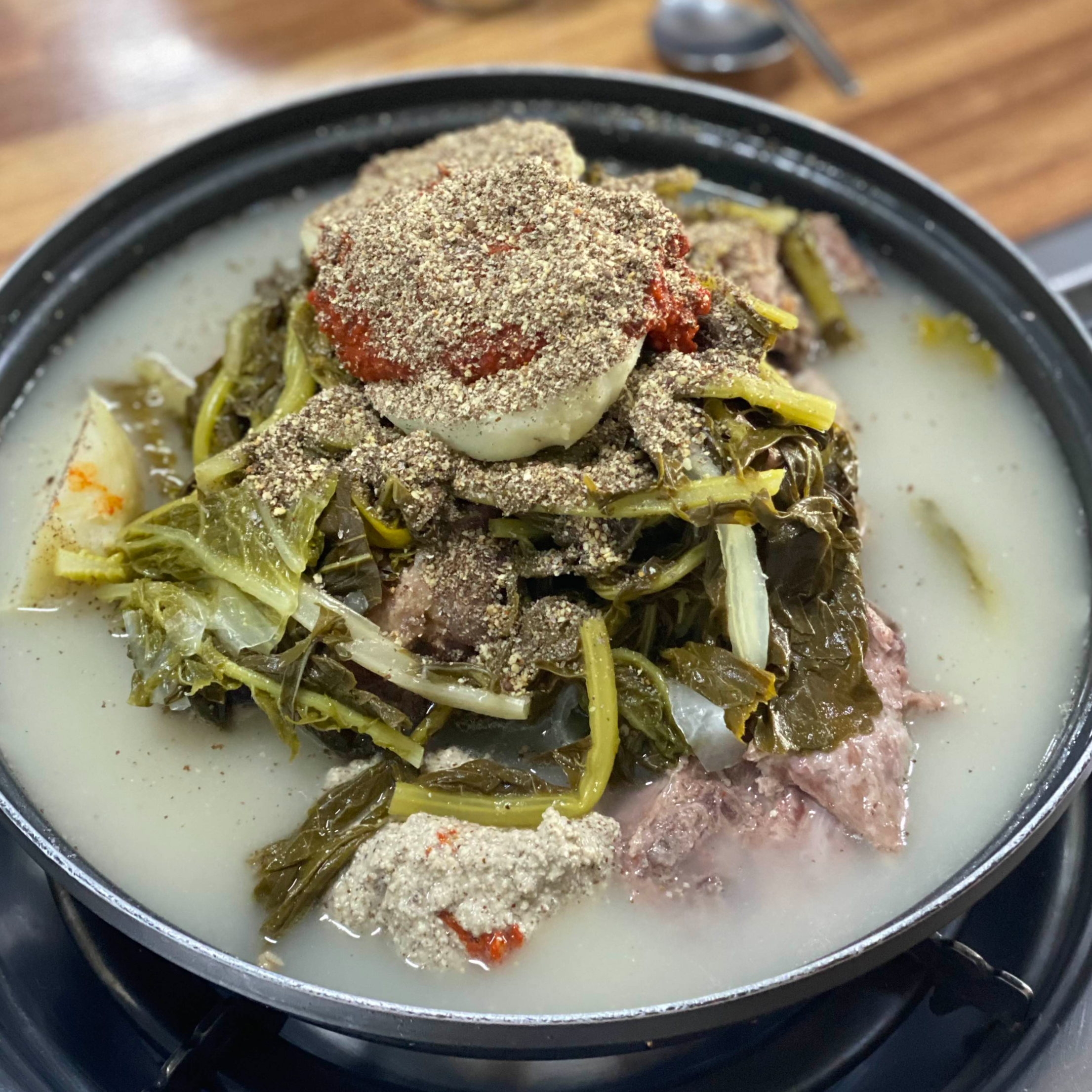 뼈도 푸짐, 시래기도 듬뿍, 들깻가루도 듬뿍 뿌려져 있다.