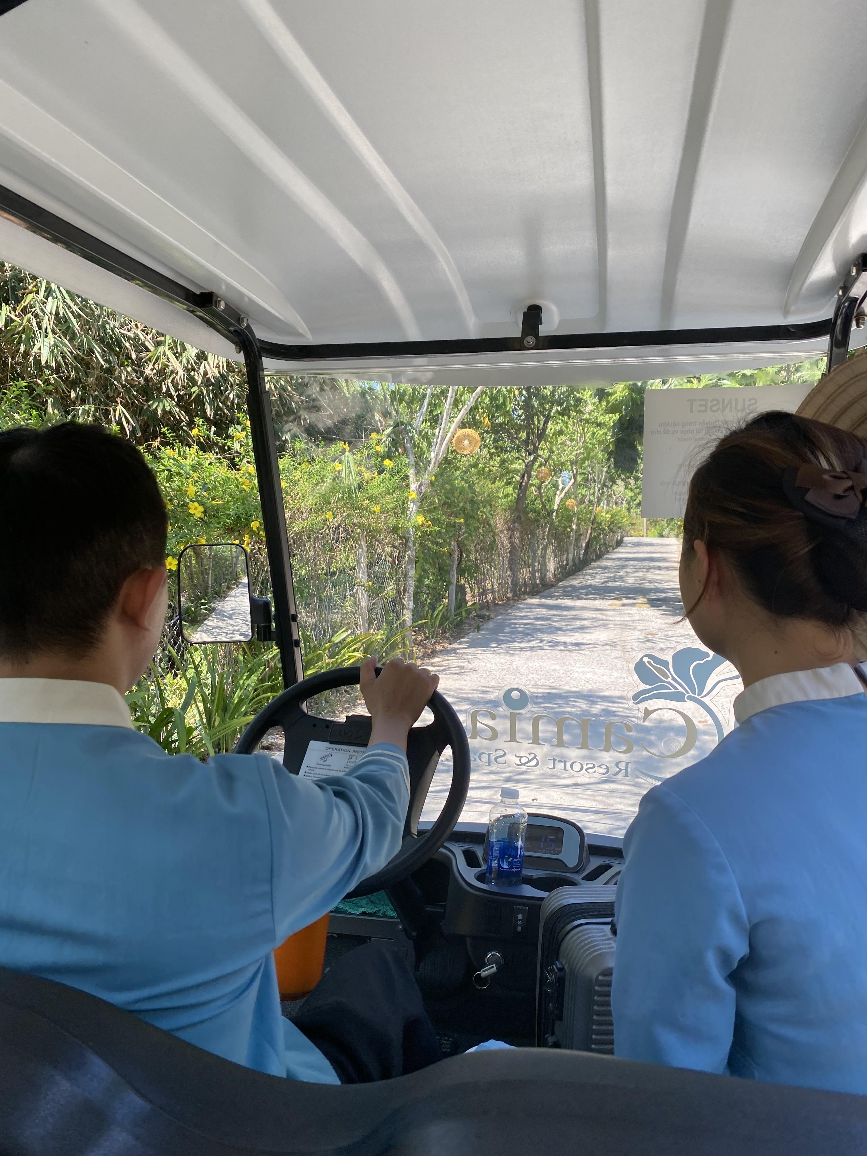 리조트 안내 설명 듣고 버기로 방까지 태워준다.