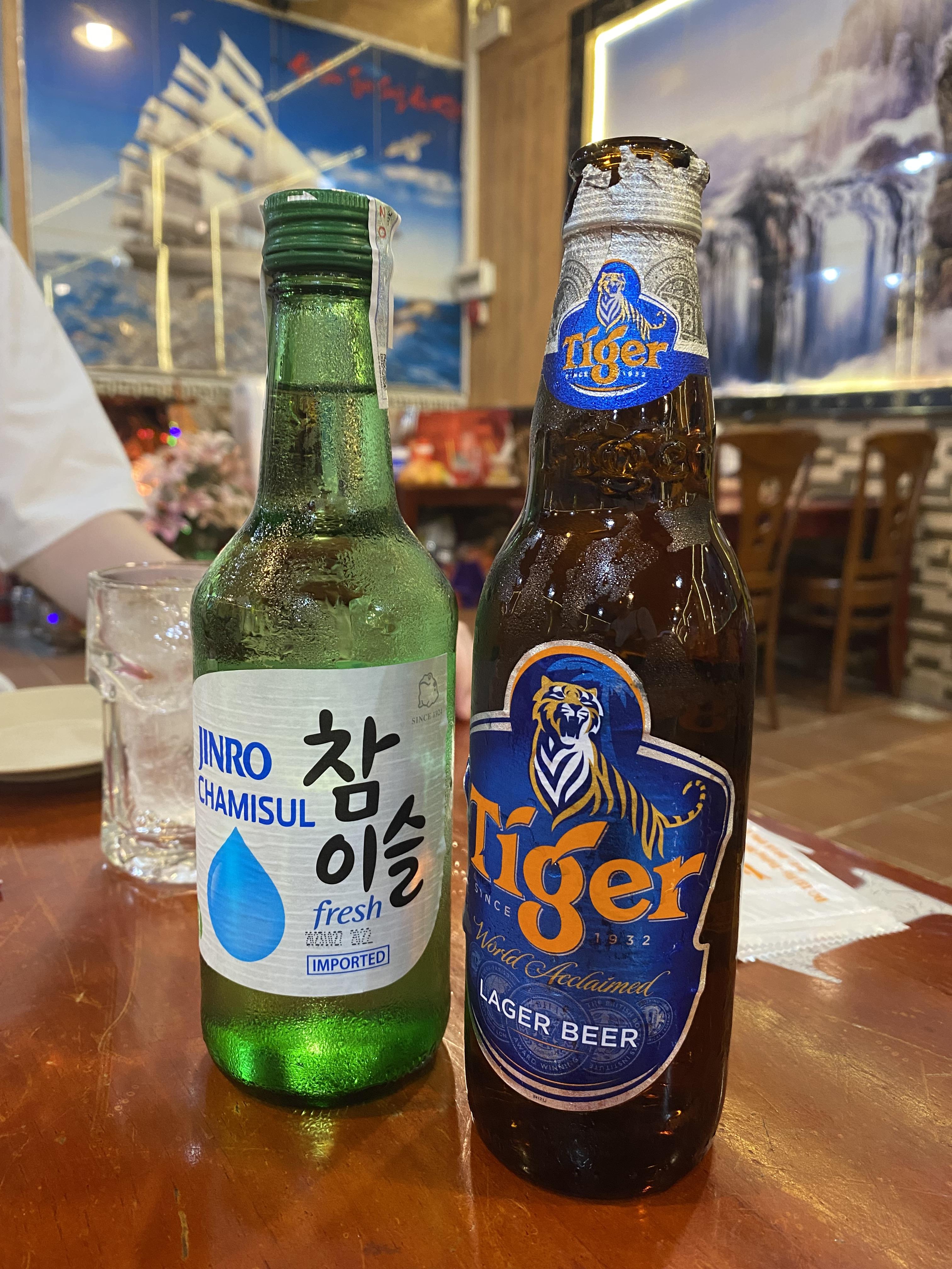 일단 타이거맥주 한 병과 참이슬 한병 ㅎㅎ