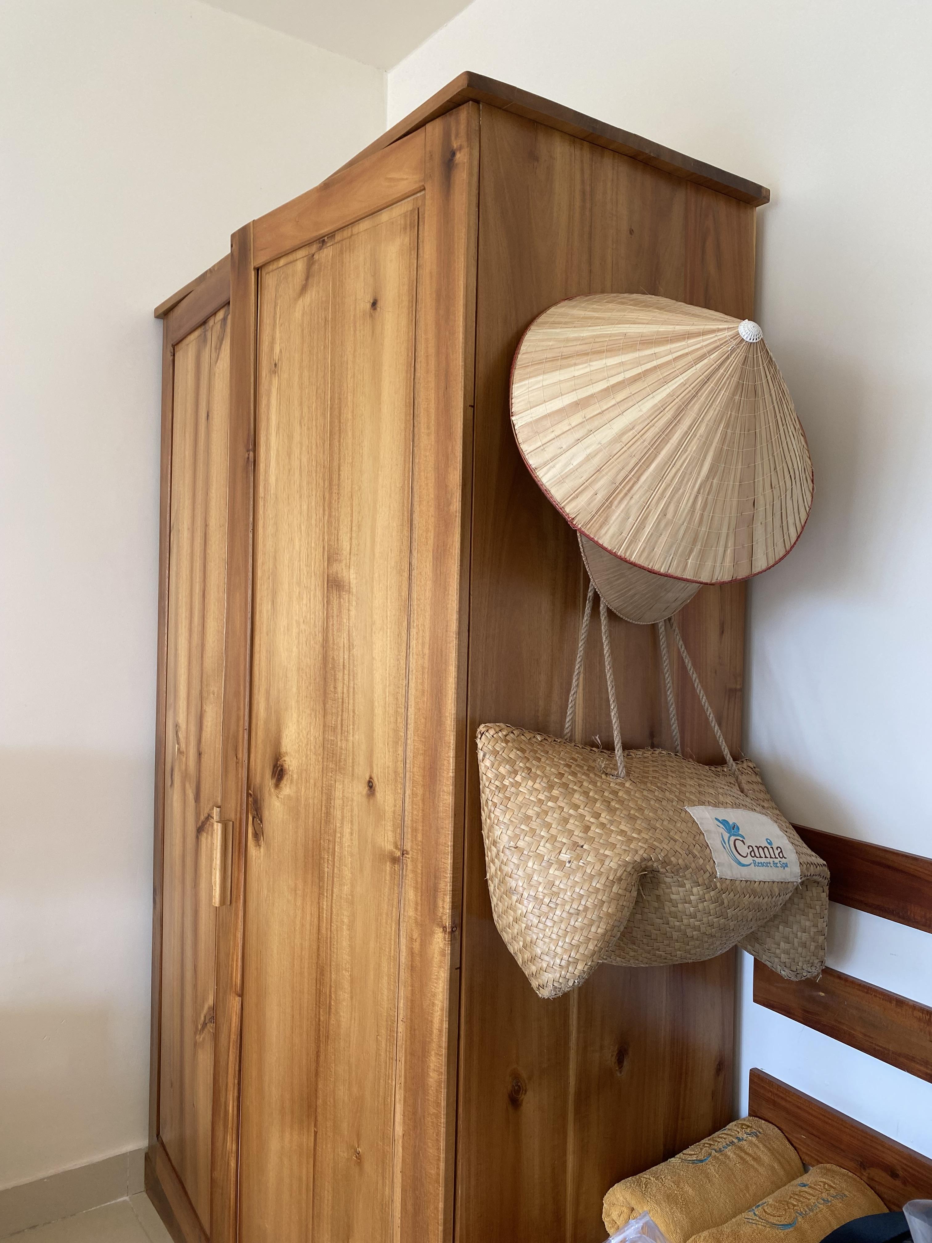 옷장 안에는 샤워가운, 금고, 베트남 모자 등등 있을 건 다 있었다.