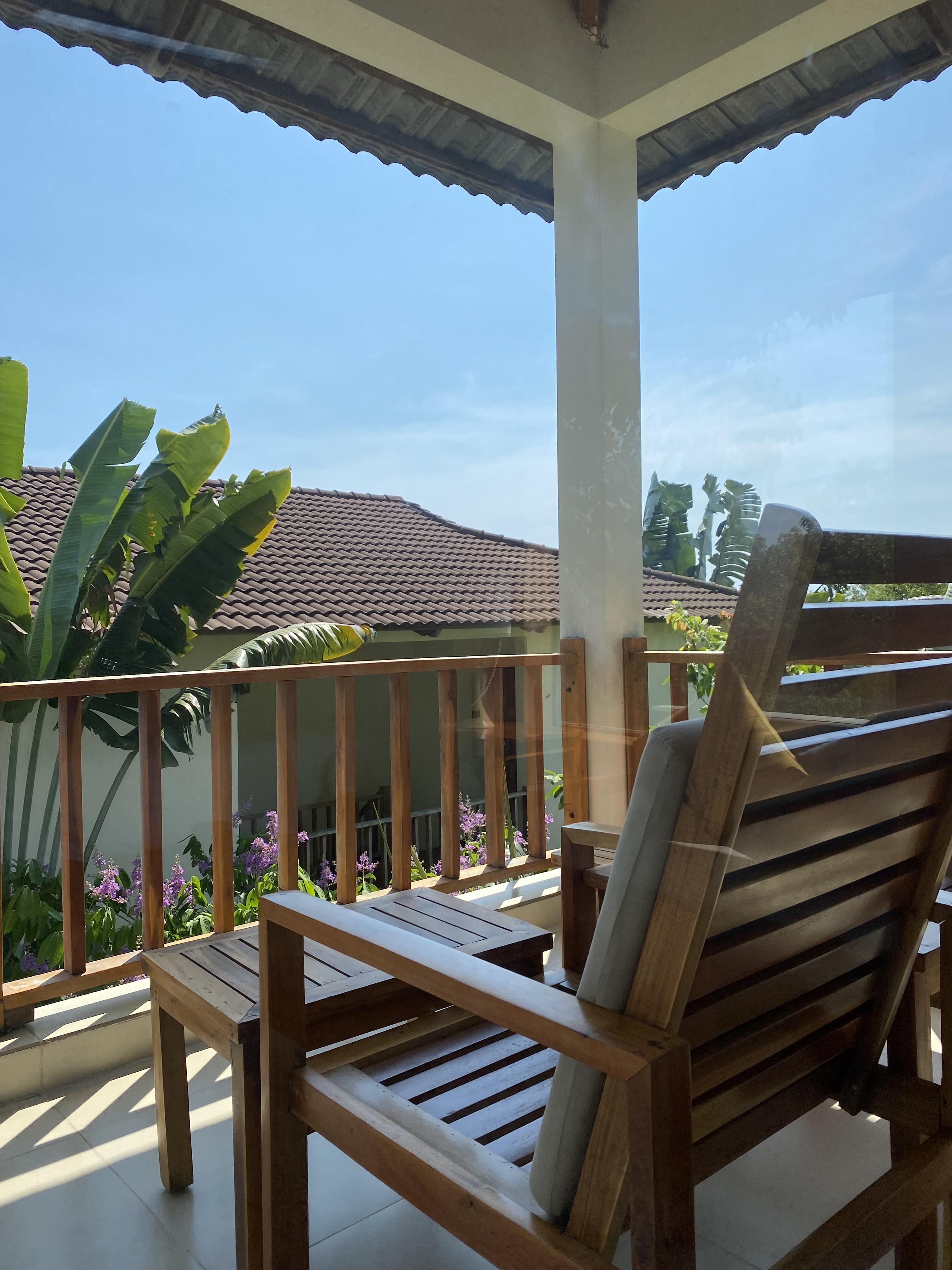 발코니에는 의자와 테이블도 있다.