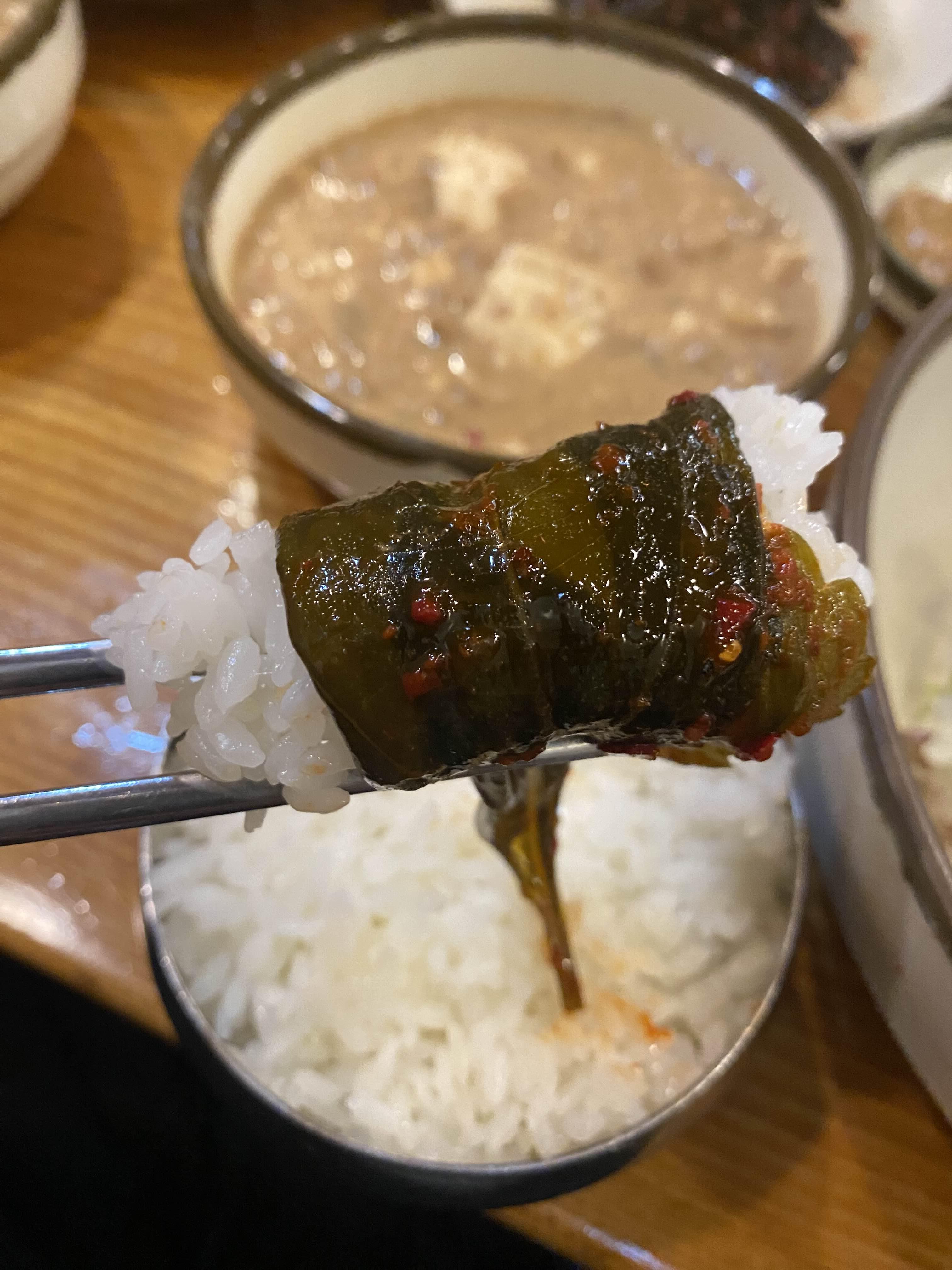 저 깻잎반찬은 진짜 돌은 놈이다... 맛있어서 밥 한 공기 더 시키고 싶은 맛.